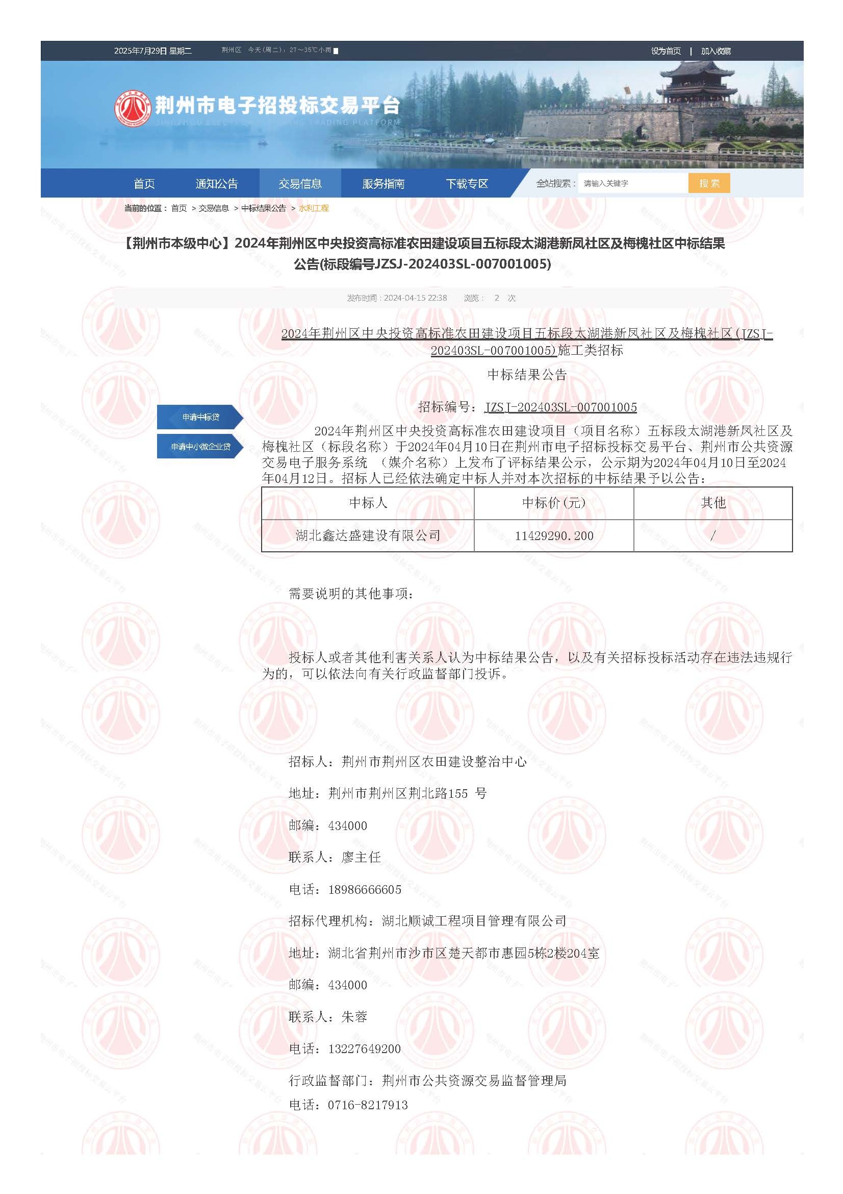 招标人:荆州市荆州区农田建设整治中心