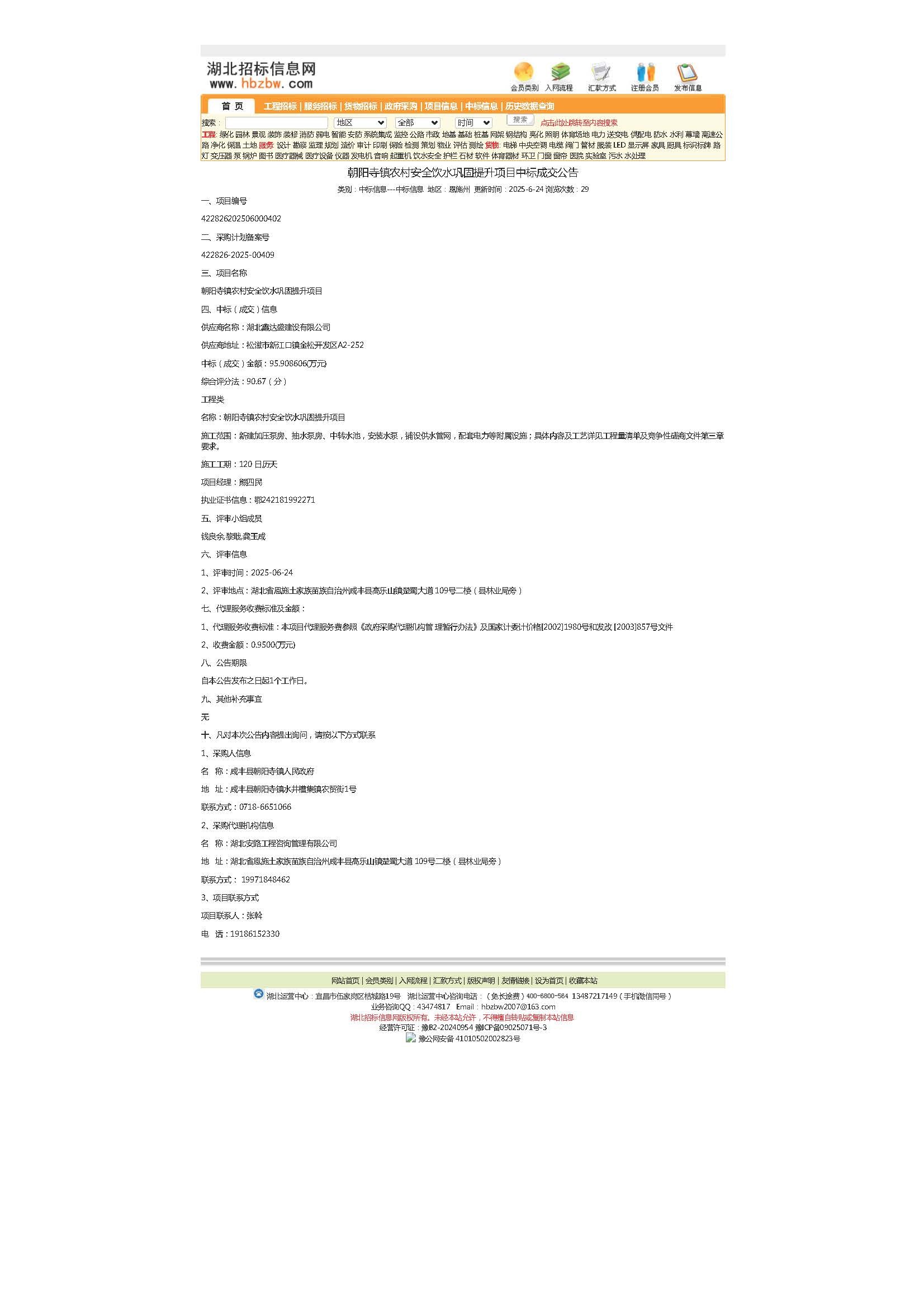 项目名称:2025-6朝阳寺镇农村安全饮水巩固提升项目
