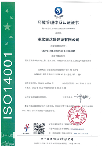 环境管理体系认证证书